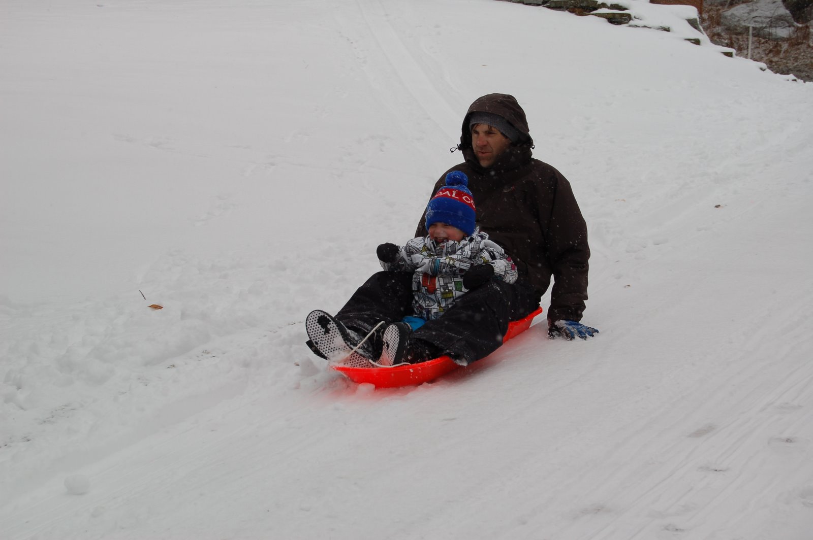 Jacob was trying to slide down the front hill on his belly like Pili does but found it doesn't work very well without a sled.